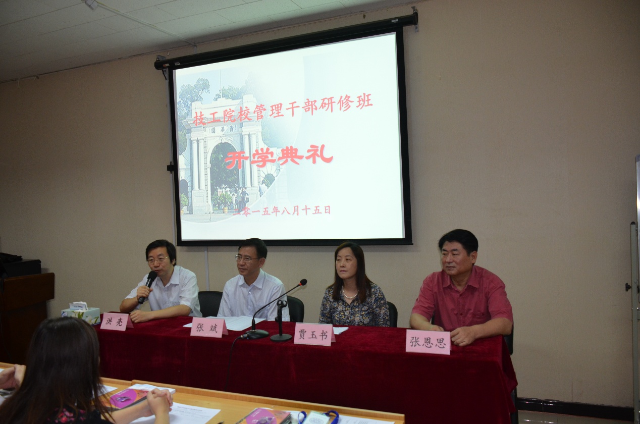 洪亮副主任在致欢迎词中表示,此次培训的师资和内容均作精心安排,将提供最优质的服务,希望每位学员能学有所成、学有所获。我校张恩思党委书记强调,本次培训体现了校领导班子对队伍建设的重视和支持,他希望全体学员严格遵守培训纪律,多与老师沟通交流,将学习成果加以运用,更好地服务于今后的实际工作。最后,作为全局系统培训教育工作的主管部门,局人事处贾玉书处长代表局做了讲话,她希望全体学员要珍惜这次难得的学习机会,勤于思考,提高和增强我们的管理理念、创新意识和综合素质,真正做到理论联系实际和学以致用,并勉励大家充分感受清华的“自强不息,厚德载物”的清华校训和人文精髓,更新技工教育理念,提高创新意识,增强技工教育管理智慧,为广州市技工教育发展提供新动力。