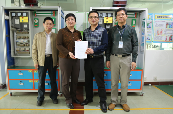 广州银谷电子科技有限公司一直是我校的友好合作单位,我校历年来很多毕业生在其单位就业,为了支持我校建设申报广州市安监局“特种作业低压电工安全技术实际操作考试点”的工作,特赠送我校“特种作业低压电工安全技术考核专用设备”一批,以满足我校的教学、实训和考核需要。2016年4月1日上午,广州银谷电子科技有限公司余东荣经理专程上门赠送设备并进行安装调试。我校詹益全副校长、技能培训鉴定处陈海霞主任及先进装备制造产业的廖少鹏老师进行了接洽。