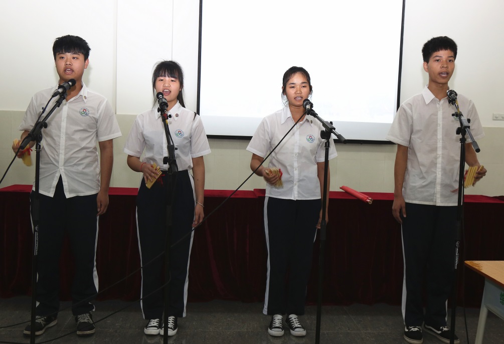 班会前一段精心制作的《寻根珠玑古巷,传承广府文化》视频以饱含深情的回溯将现场营造了浓郁的广府人精神主题氛围。视频刚结束,4位“广府班”学生手持快板,自信满满,声情并茂,来了一段《忆南雄行》——“视频看完很感慨,想要来段小快板。别的事情咱不表,单说特色广府班……”这一特别的暖场节目赢得了阵阵掌声。
