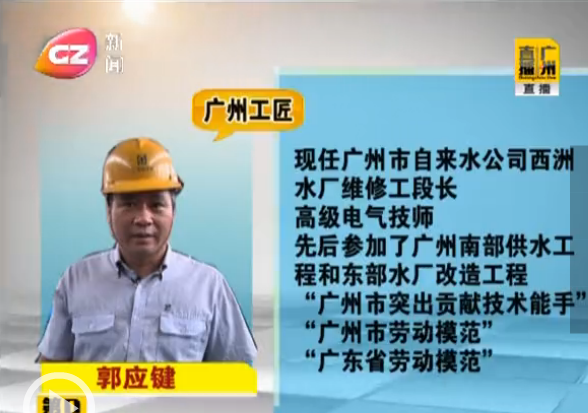 自工作以来,郭应键从一名普通的维修电工做起,先后参加了广州南部供水工程、东部水厂改造工程,迅速成长为生产骨干和水厂维修工段的带头人。