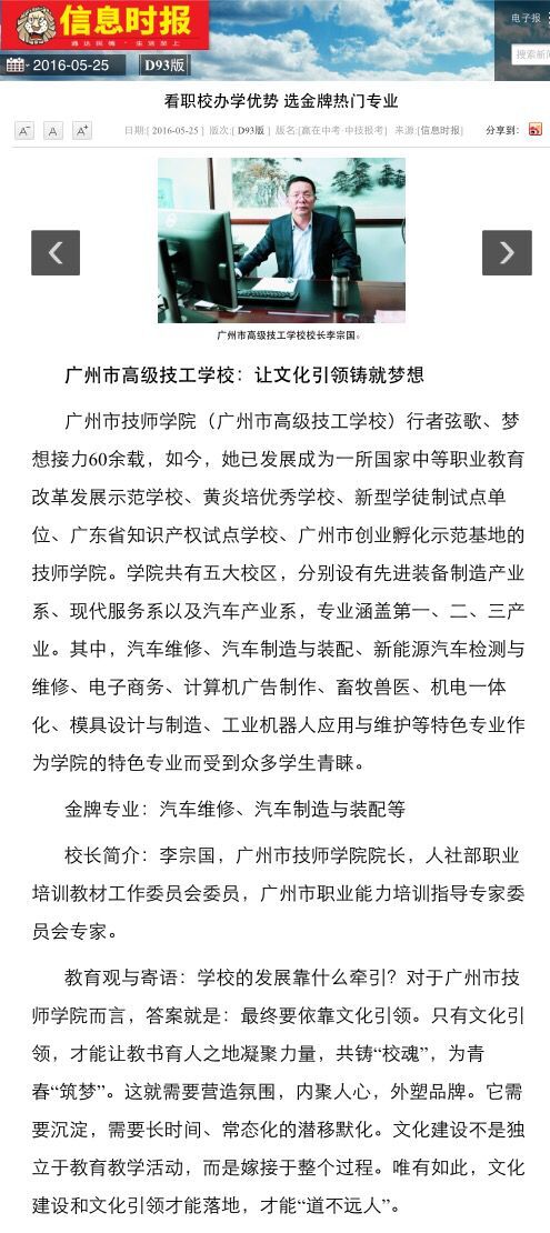 “学校的发展靠什么牵引?对于beat365正版唯一官网必一而言,答案就是:最终要依靠文化引领。”beat365正版唯一官网必一砥砺奋进60余载,始终以传承工匠精神,5月25日,《信息时报》以《让文化引领铸就梦想》为题,报道beat365正版唯一官网必一以实际行动共铸“校魂”、为青春“筑梦”。