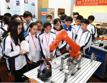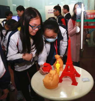 在参观技能大师工作室和校企合作教学基地宠物医院过程中,不时传来叫好声。“太棒了!这个激光打印作品我喜欢。”“这个彩蛋好Q,我也想尝试做一个。”“狗狗好可爱,造型很迷人。宠物美容师的手真巧!”……他们深深地被绘蛋机、激光雕刻机、3D打印机、机器人手臂操作等技术所吸引,更是被宠物医院汪星人的各种萌态逗乐。