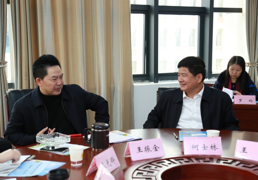 ▲黔南医专党委书记王振金(左)与何士林副局长(右)交流