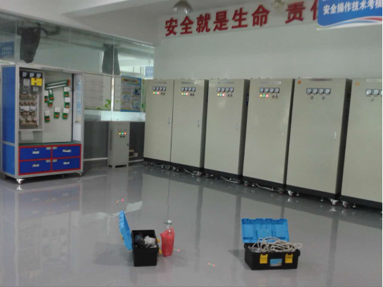 目前,我校现拟申报广东省特种作业低压电工安全技术实际操作示范考试点,但目前设备已使用多年,且使用率高,损耗较大,已不能满足鉴定考核的需求,因此提出购置一批“特种作业低压电工考核专用设备”,以满足我校的特种作业实操培训和考核需要。经货比三家,与广州银谷电子科技有限公司达成特种作业低压电工考核专用设备购销协议,这是我校与企业开展校企合作,共建低压电工实训考场,企业免费为我校低压电工实操考场的地面、墙面刷漆、施工与场地改造工程。