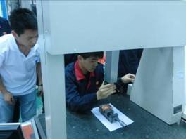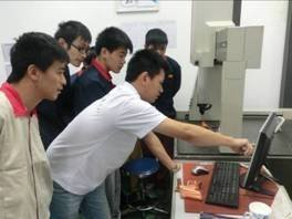 学生使用硬度仪 学生在企业师傅指导下使用三坐标测量仪