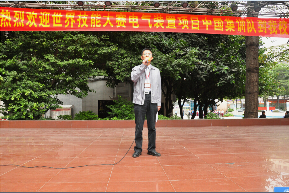 2014年11月3日,秋高气爽,天空蔚蓝,在这秋风微凉的美好日子里,我校为了欢迎世界技能大赛电气装置项目中国集训队到我校集训,特地举行了简单而隆重的欢迎仪式。
