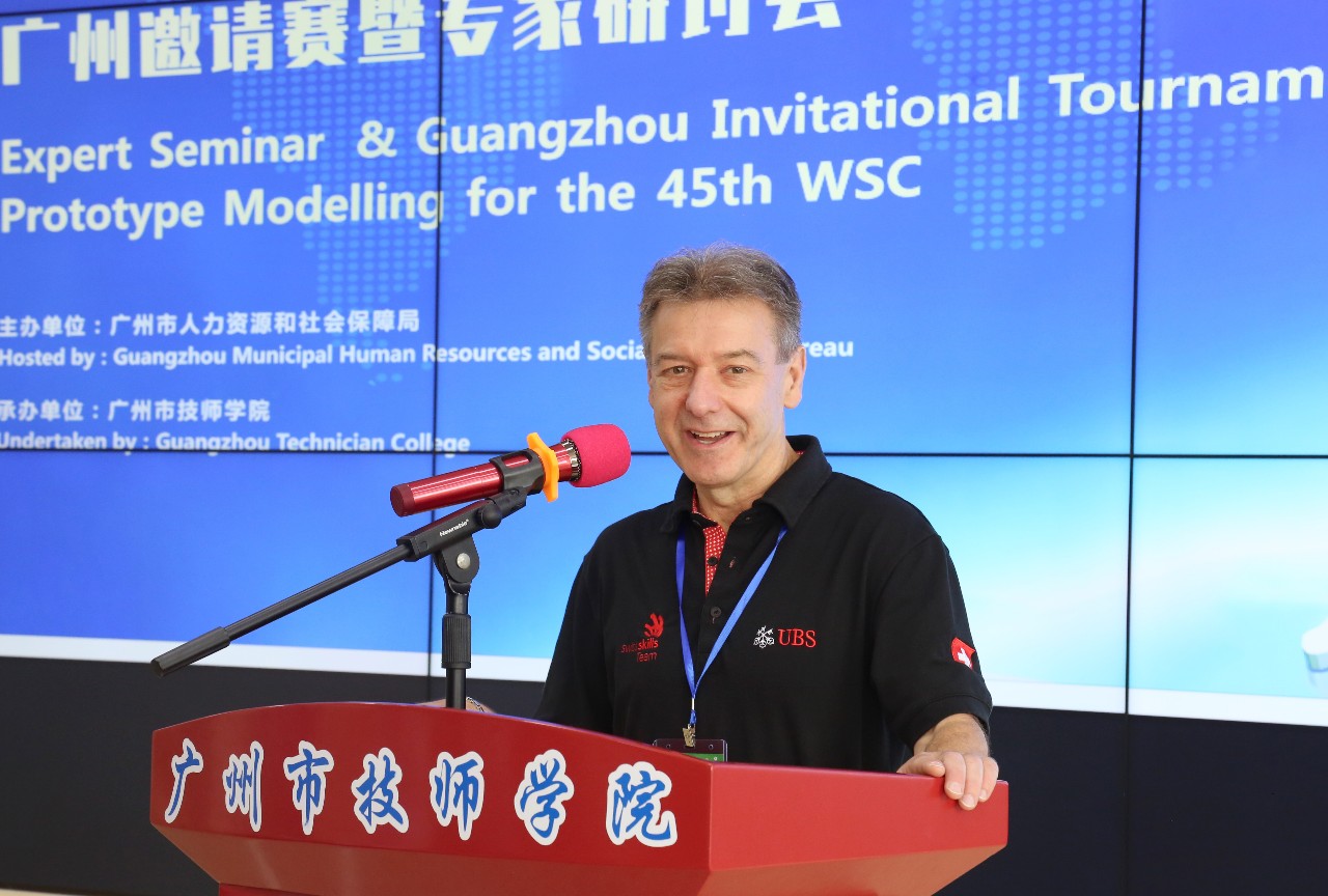 瑞士专家裁判雷纳﹒奥内热(上届世赛原型制作项目首席专家)在仪式上表达了朋友重逢的欣喜之情。两年前,他作为首席专家参加了原型制作项目广州邀请赛暨专家研讨会,与我院开始结缘,了解了原型制作项目中国集训基地的建设与人才选拔、集训情况。