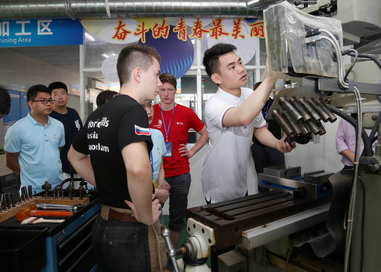 “铣床如何调转速?”、“如何装夹刀具?”、“3D打印如何传输?”、“精度怎么调?”……开赛仪式结束后,在基地工作人员的介绍及演示协助下,参加邀请赛的各国选手对比赛场地和设备进行赛前了解与熟悉。针对各国选手的不同问题,工作人员及中方选手逐一耐心讲解,并指导操作。对世赛的期待与对技术的虔诚,使得各国年轻选手很快从陌生变成熟络,不时传来欢声笑语。而对于中方教练黄枫杰和俄罗斯教练费多尔�扎维亚历克而言,则是代表各自国家在第44届世赛上同场竞技的赛友,本次相聚多少有朋友久别重逢的意味。