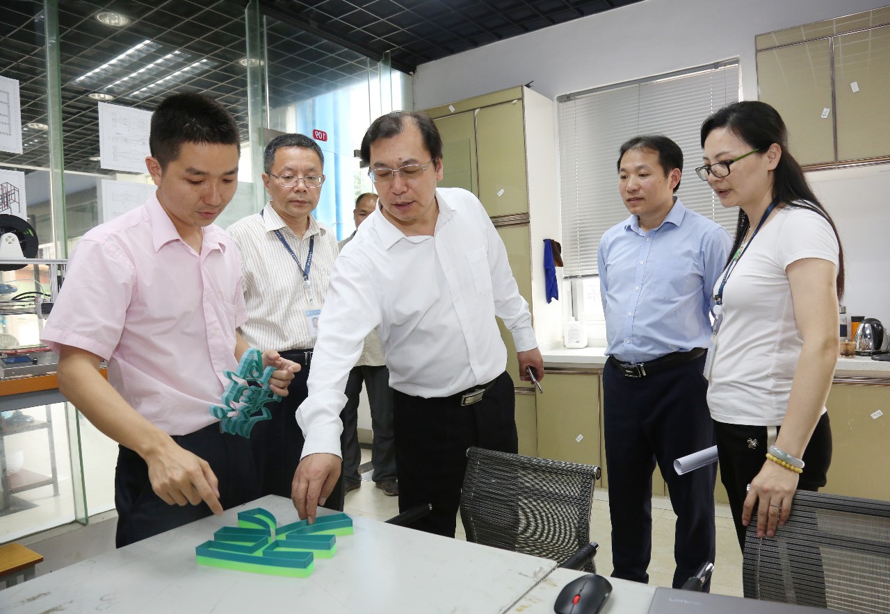 ▲3D打印专业教师向刘振英一行介绍广告字工业3D打印技术