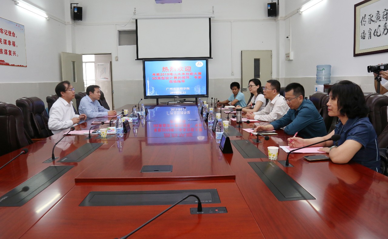 4月22日下午,金砖国家工商理事会中方技能发展组组长、一带一路暨金砖国家技能发展国际联盟理事长、金砖国家技能发展与技术创新大赛组委会执委会主席刘振英,金砖国家技能发展与技术创新大赛组委会执委会副主席、北京企学研教育科技研究院执行院长何勇,北京企学研教育科技研究院产教合作处主任陈杰文,一行3人莅临我院江高校区,就合作承接 2019 喀山未来技能大赛之3D原型设计赛项选拔集训事宜进行考察。在院长李宗国、办公室主任谭癸华、教务处主任王学清、先进装备制造产业系主任夏建辉陪同下,刘振英一行分别参观了第45届世界技能大赛原型制作项目中国集训基地、增材制造实训基地、世界技能大赛电气装置项目省级集训基地,并举行座谈交流。