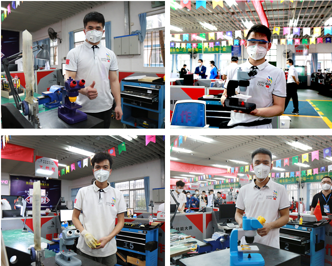 该项目本次集中阶段性考核内容为:在16小时内完成显微镜模型的设计制作与装饰。原型项目世赛的比赛时长为18—22小时,分三四天进行。“本次考核将时间压缩到16小时,分两天进行,对选手而言是不小的挑战,时间紧任务重,制作质量还得向世赛获奖水准看齐,不容易。”熊志勇介绍。
