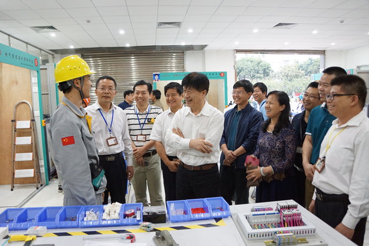 接着,张厅长等一行看望并慰问了正在我校参加第43届世界技能大赛电气装置项目国家集训队循环赛的8位集训选手。李宗国校长专门向张厅长介绍了我校选手李炎波同学。当张厅长听到李炎波是在强手如林的各级竞赛中,作为广东省唯一选手出线,加入到国家集训队之中时,非常高兴。张厅长紧紧握住李炎波的手说到,目前中国在世界技能大赛中,还没有实现金牌“零的突破”,你有没有信心实现这个梦想?李炎波同学回答道,我一定刻苦训练,争取获得更好的成绩,回报母校、为母校争光。