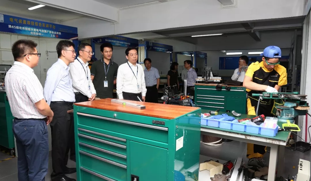开班仪式前,张远芳助理署长一行在何士林副局长等陪同下,参观了beat365正版唯一官网必一的的第45届世界技能大赛原型制作项目中国集训基地、CAD机械设计工作室、增材制造实训基地、世界技能大赛电气装置项目集训基地、工业机器人实训基地和物联网实训基地。