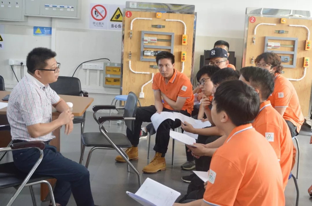 ▲观摩电气装置集训选手集训
