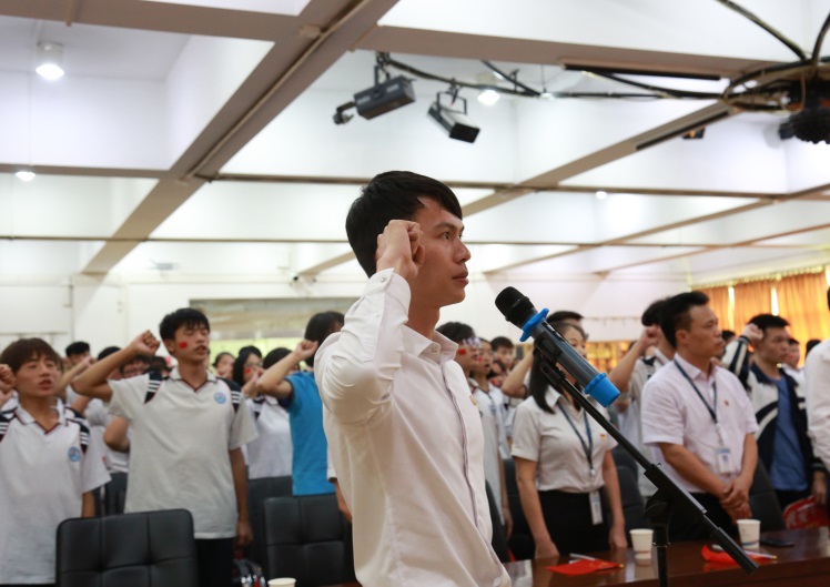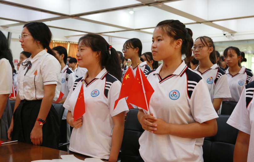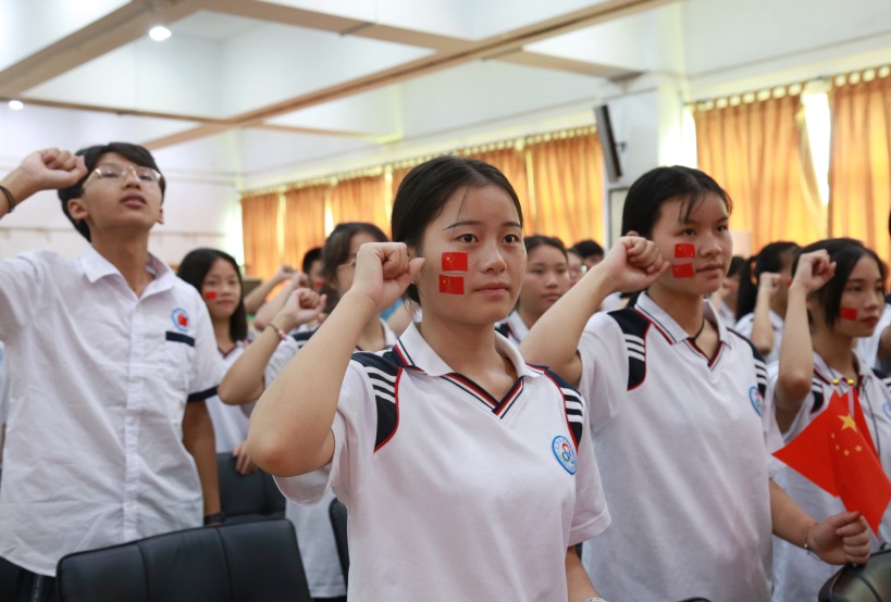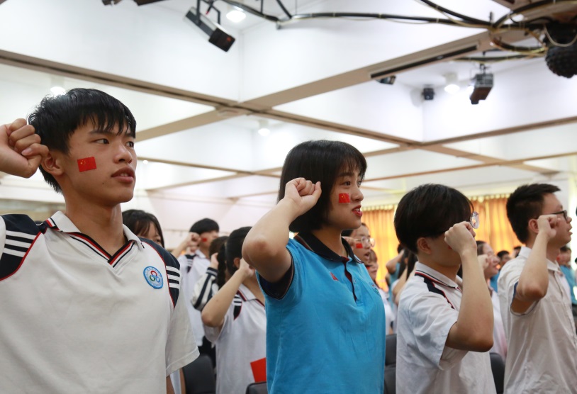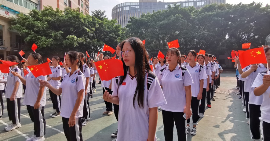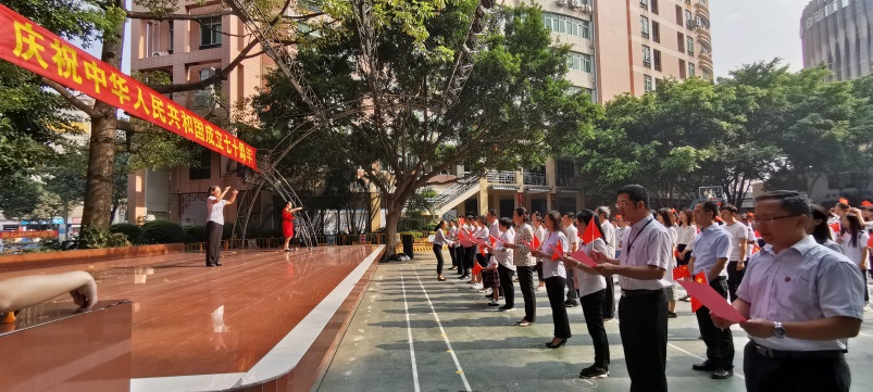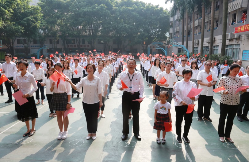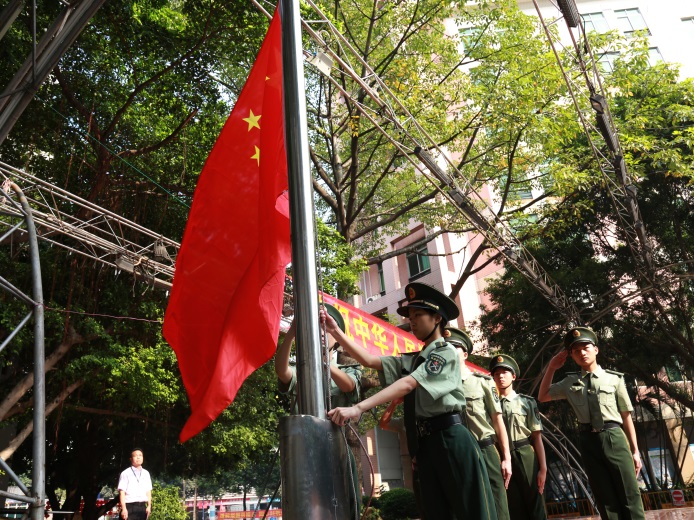 ▲共青团广州市白云区委员会团区委书记靳笛等领导与学院师生为祖国送上祝福