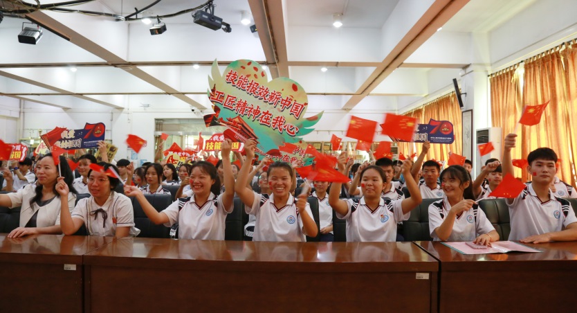 活动中,举行了庄严肃穆的国庆升旗仪式,伴随雄浑磅礴的国歌、凝望冉冉升起的国旗,大家心潮澎湃、幸福油然;师生齐唱《歌唱祖国》,激昂而动听的歌声响彻校园,那是大家洋溢的幸福、心中流淌的赞歌;齐声共同祝福祖国,朴素而真挚的祝语,是大家同频共振的告白;参观羊城工匠馆,致敬技能工匠,感怀技能强国梦;组织师生观看阅兵仪式,感受祖国的伟大复兴、民族力量;青年学子技能报国宣誓,誓将爱国之情、强国之志转化为实际行动。
