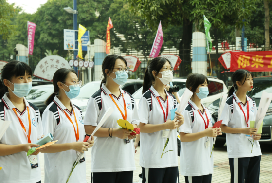 但见他们穿着整齐,笑脸盈盈。有的手捧鲜花,有的手持自制贺卡,有的手拎精致小礼品,有的充分利用专业知识特制糕点、姜撞奶,有的列队齐唱赞颂教师歌曲,伴着朝阳恭候老师的到来。首先迎来的是学院领导班子——党委书记王作根带领着副院长詹益全、李立文、刘海波、陈实款款而来,接受同学们的真挚问候和衷心祝愿。