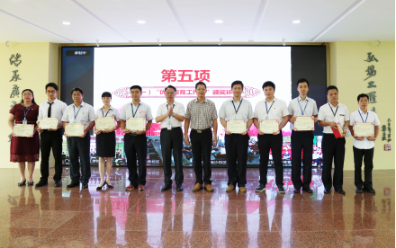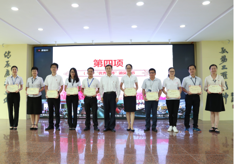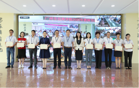 ▲詹益全副院长(右六)、李立文副院长(左六)为“十佳”教育工作者颁奖
