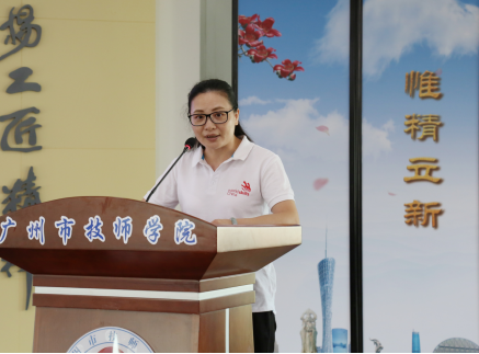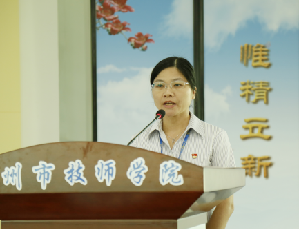 ▲“十佳”教师赵晓霞代表发言:将继续前行,坚持不懈,奉献自我,做技能人才的引路人