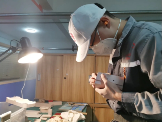 相对于其他选手,他对本次大赛的情愫会更复杂。2014年,他入读我院,2015年参加省市数控技能大赛,曾获第七届全国数控技能大赛广东省选拔赛(数控加工四轴)第四名。2017年,他转战原型制作项目,成为学院集训梯队选手,怎奈彼时实力尚不济,前有后来夺取第45届世赛原型制作项目优胜奖的文俊凯。“当时觉得自己与世赛的缘份只能到市级选拔赛,2018年9月便去了一家公司,体验了一年的职场生活。”工作中,开阔了眼界,拓展了思维。由此反观世赛,他猛然间有种打通任督二脉的感悟。“用生产的思维去看世赛集训,许多问题就想通了,同时又可以通过世赛的理念去掌握前沿技能技术。”或许这就是“不谋全局者不足以谋一域”。2019年7月,他杀了个“回马枪”——回校报读预备技师班,继续征战世赛选拔。