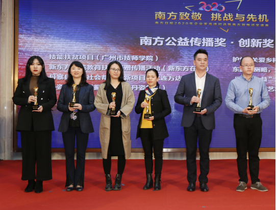 2020年12月16日,南方报业集团在广州举行“南方致敬:挑战与先机——南方日报2020年企业家高峰对话暨南方致敬颁奖盛典”,对开展了一系列社会实践,在教育、养老、环保、扶贫等领域留下了履行社会责任坚实脚印的企业、事业单位等进行隆重表彰。其中,我院因创新精准施策扶贫、为脱贫攻坚贡献力量而被授予“南方公益传播奖�创新奖”,为全省唯一获此殊荣的技工院校。