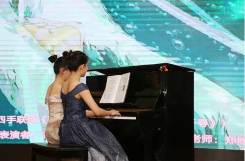 钢琴四手联弹的经典曲目《那一日的河川》《路小雨》,如琴键上的精灵,将观众带入《千与千寻》的熟悉画面,仿佛看到了门口的石像,穿过隧道,走过教堂,复行数十步,豁然开朗,走过草原,远方是那条水色下的铁轨;带着观众重听《不能说的秘密》,琴声里,既有巴赫平均律般的前奏曲的况味,也有流行钢琴曲的畅吟,无不体现幼教专业学生的审美素养,更能聆听到幸福的旋律。