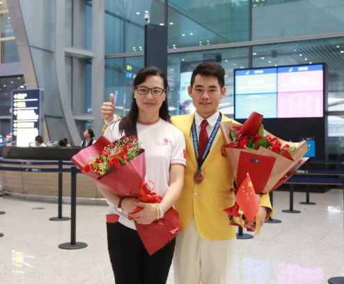 ▲在赵晓霞倾心培养下,黄枫杰勇夺第44届世赛原型制作项目金牌