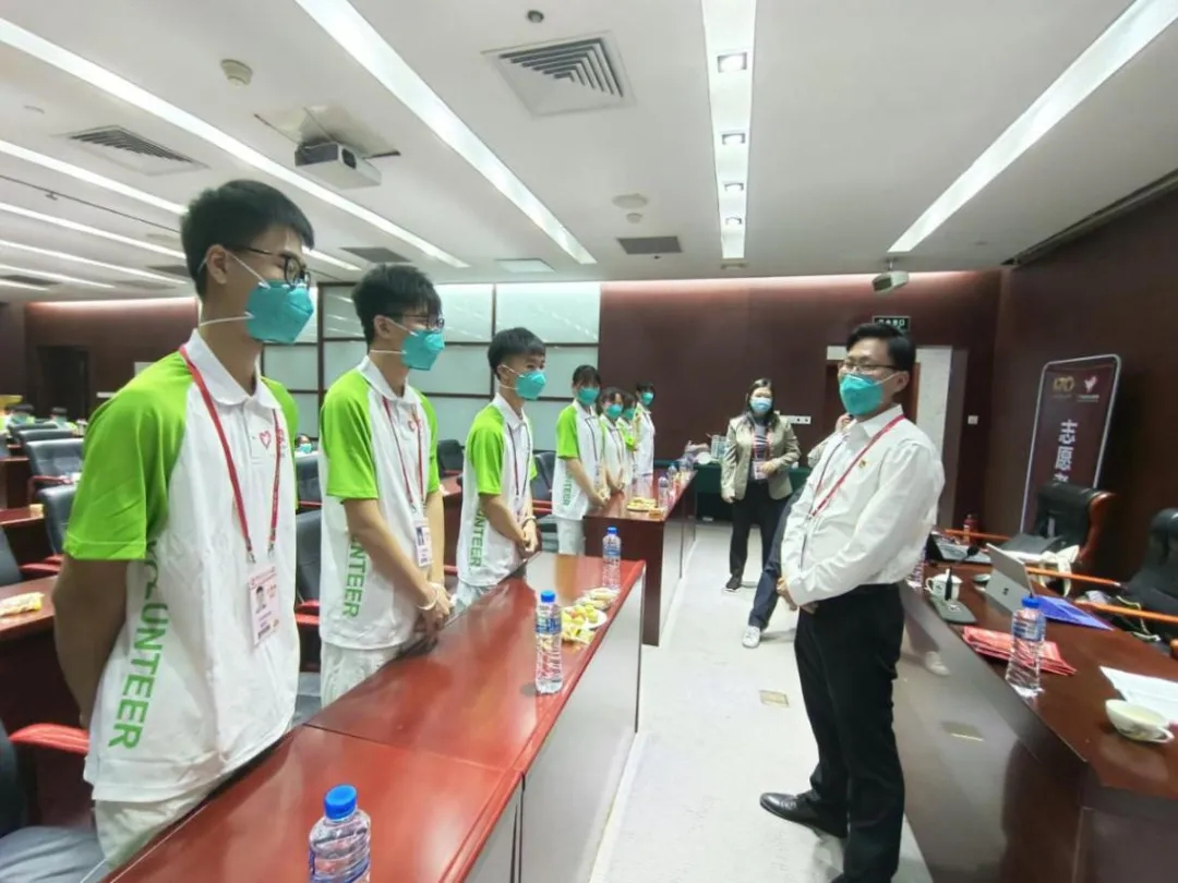 10月19日下午,团市委广州市志愿者行动指导中心党支部书记、主任马发腾前往广交会展馆向beat365正版唯一官网必一学生志愿者表达慰问和感谢,高度赞扬学院培养的志愿者专业服务水平高。