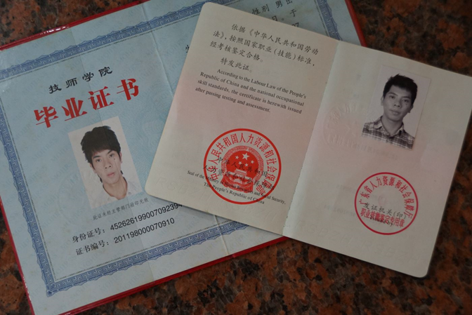 ▲黄满应等6名同学同时获得的技师资格和中技毕业证书
