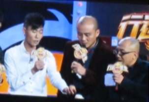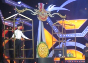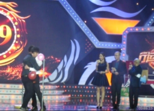 节目录制环节还邀请我校的两位同学进行了趣味十足的游戏节目,如“转转转,拿大奖”,要求参加者俯身绕木棒9圈,然后最快到达指定位置敲响锣声者为胜利;又如“天平秤”,天平一边站人,另一边由参加者搬奖品,限时之内如果天平平衡,则奖品全归参加者。游戏节目十分刺激,我校的同学热情投入。