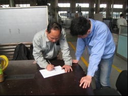 该项目由试模组组长张师傅担任培训导师。向学员们详细解释了成形性检查表(试模报告)中每一项内容的含义,并以实物的方式来说明各项数据对成形产品所产生的影响及解决方法。