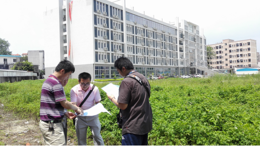图4 6月11日,学校基建办与施工单位现场确认施工范围。今日,此地不再荒芜。